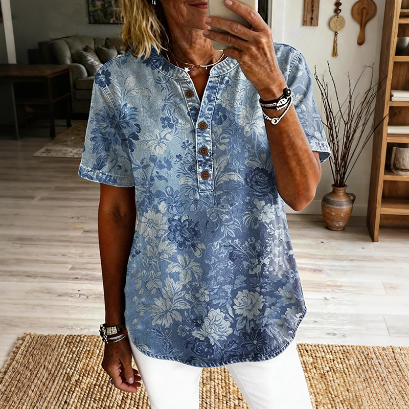 Women's Vintage Floral Art Print Casual Short-sleeve Shirt