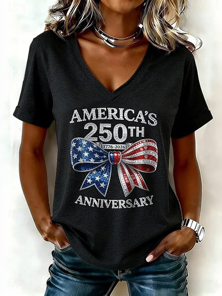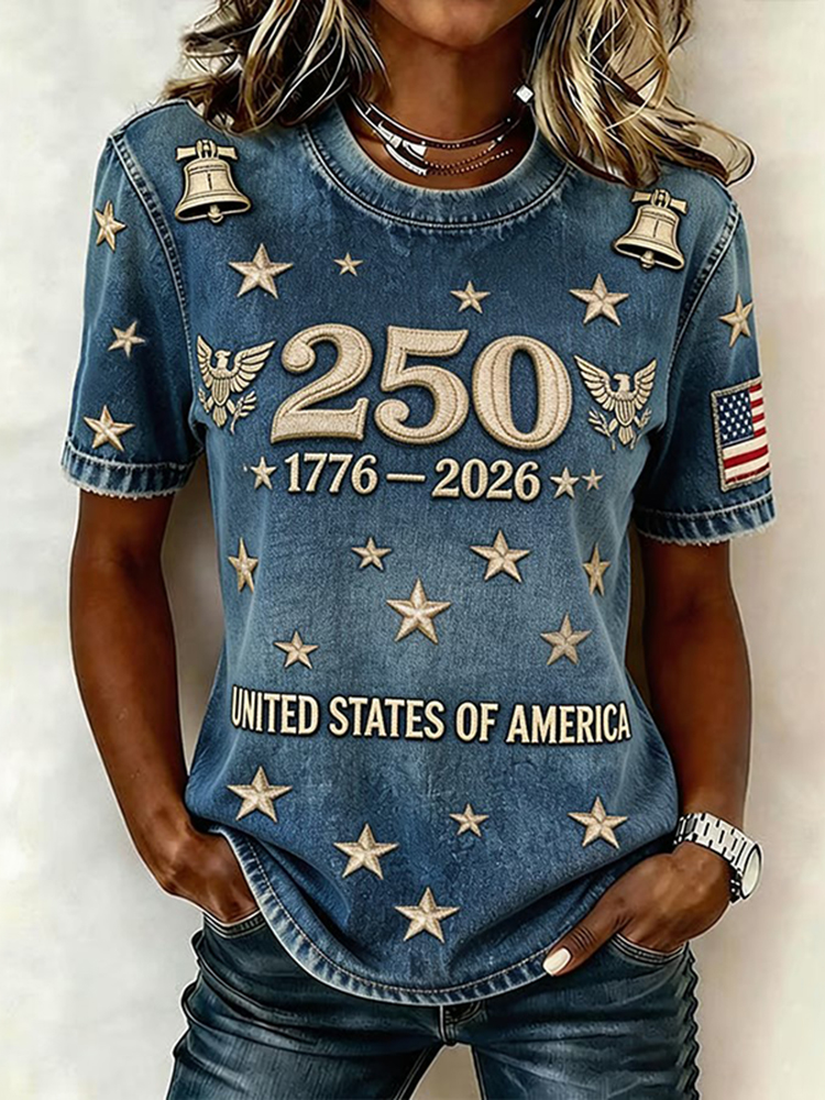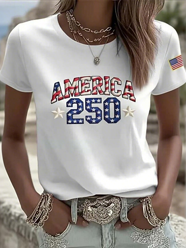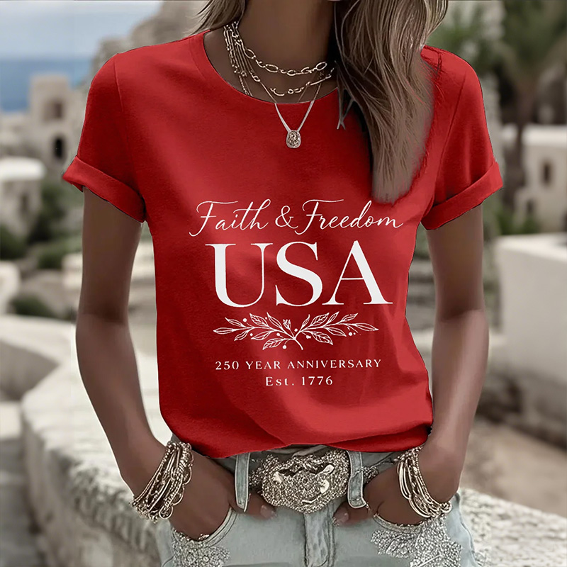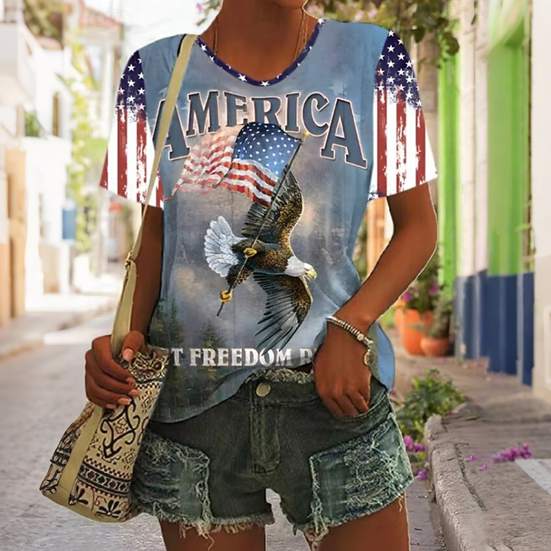 Women's Independence Day Commemorative Printed Half-sleeved Shirt