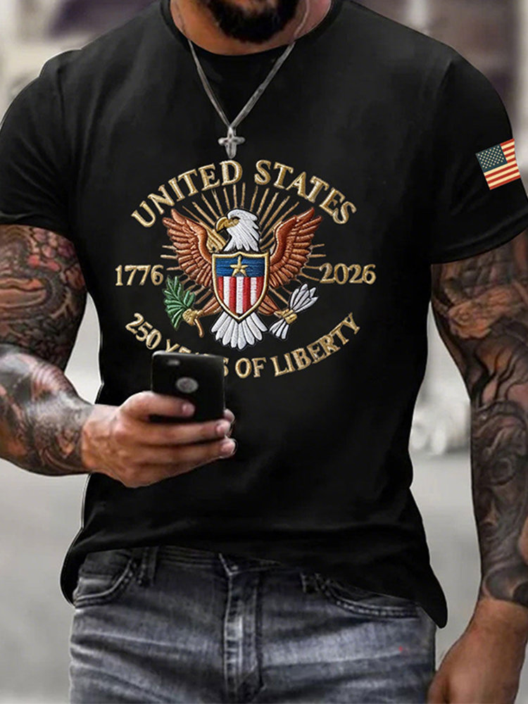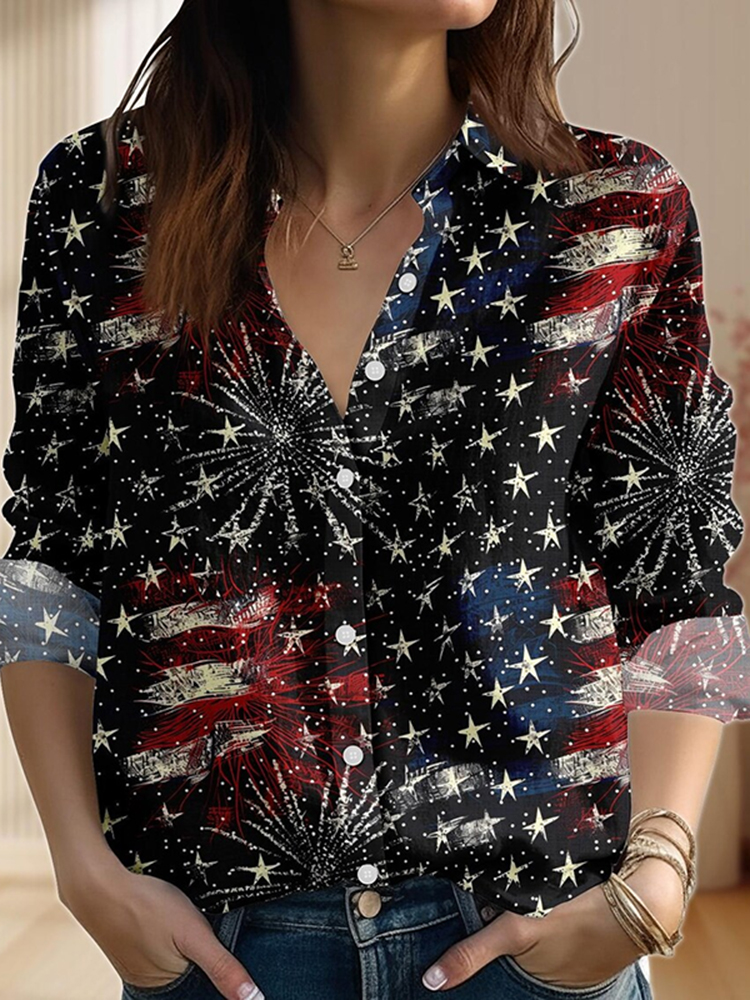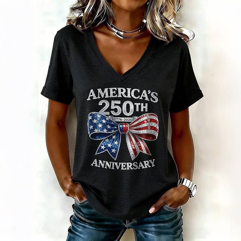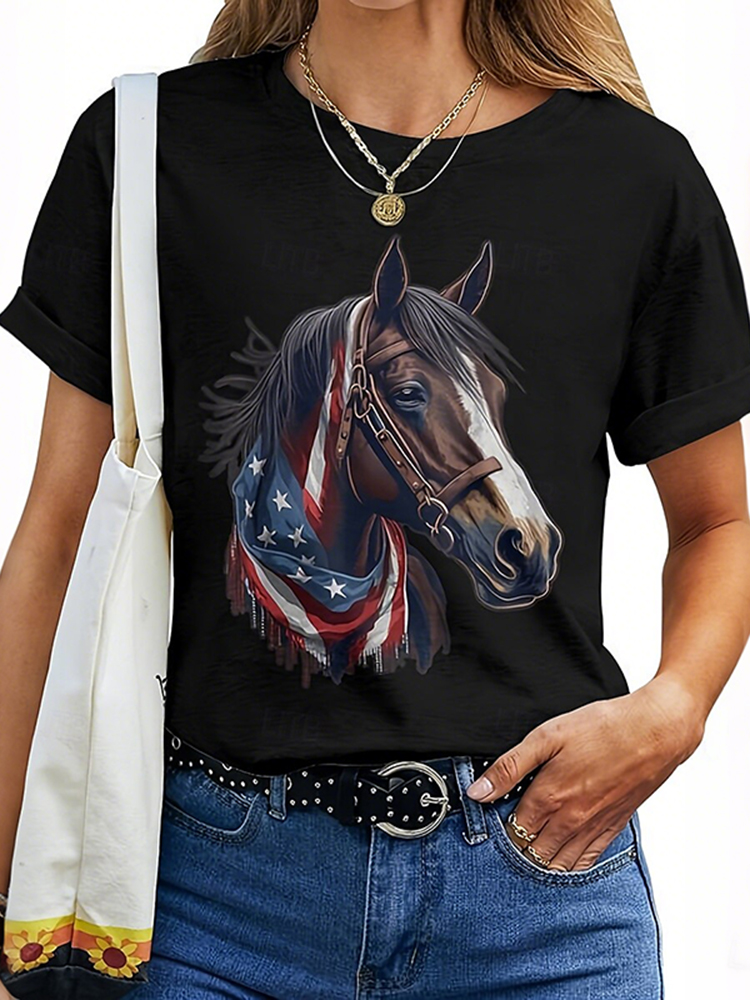 Women's Independence Day Commemorative Printed Half-sleeved Shirt