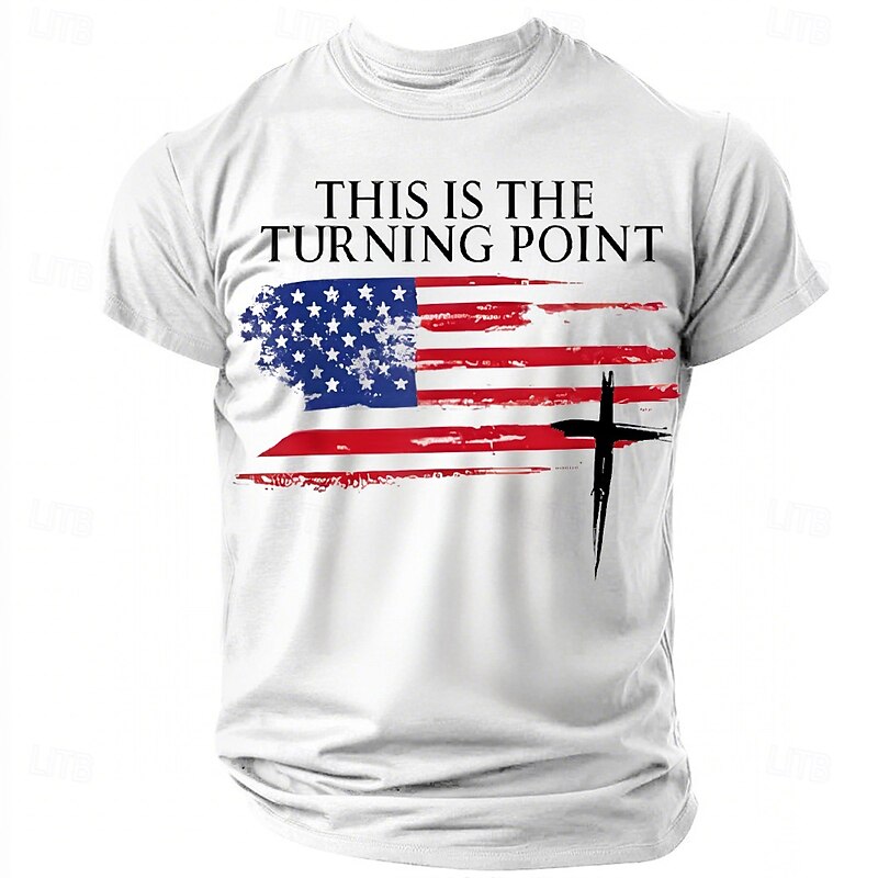 Men's Independence Day Flag Print Short Sleeve Linen Blend Shirt