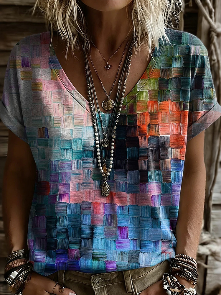 Women's Geometric Art Print Crew Neck Short Sleeve T-shirt