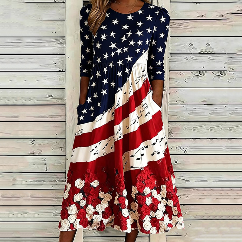 Women's Vintage Floral Independence Day Flag Art Print Dress