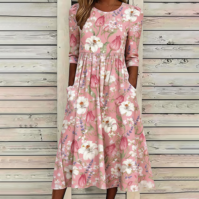 Women's Bohemian Retro Ethnic Floral Color-blocked Art Print Flowy Linen Blend Long-sleeve Casual Dress