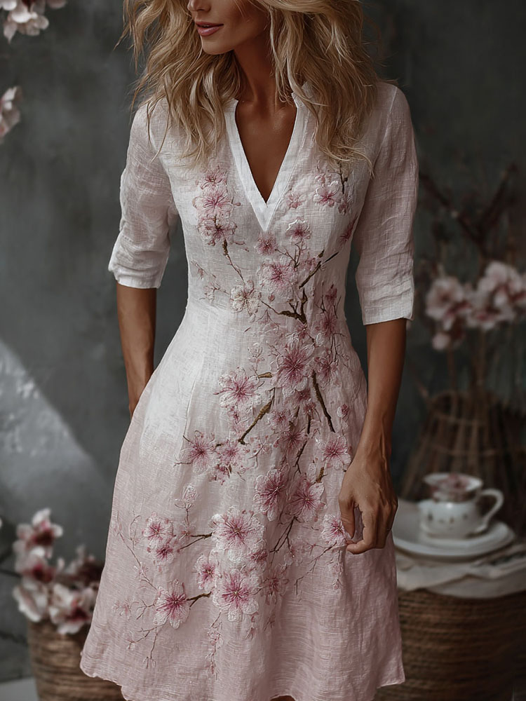 Women's Exquisite Embroidered Print Art Casual Linen Short Sleeved Dress