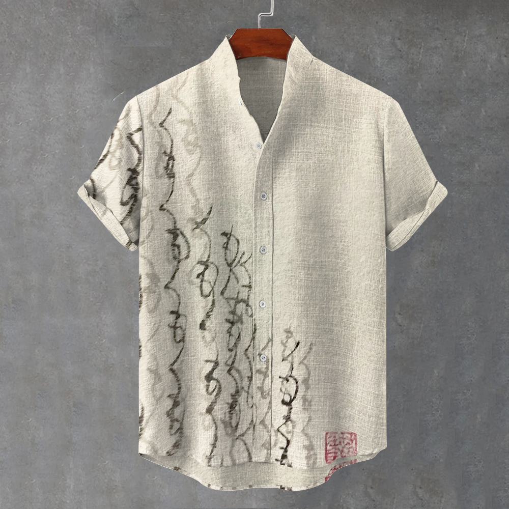 Japanese Ink Calligraphy Art Vintage Cozy Linen Shirt