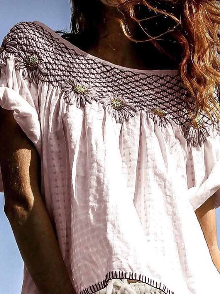 Women's Vintage Floral Art Embroidery Linen T-shirt