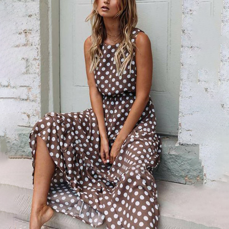 Women's Boho Floral Patch Art Sleeveless Midi Dress