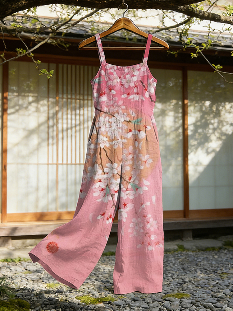 Japanese Cherry Blossom Art Cozy Linen Jumpsuit