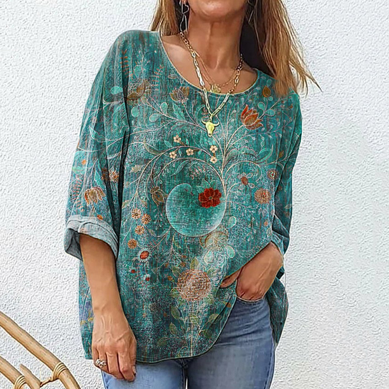 Women's Casual Bohemian Linen Floral Style Long-sleeve Top Shirt