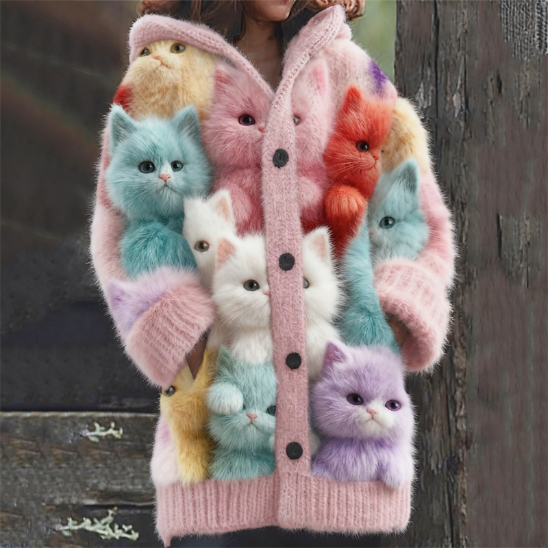 American Shorthair Cats Crochet Cozy Knit Hooded Cardigan