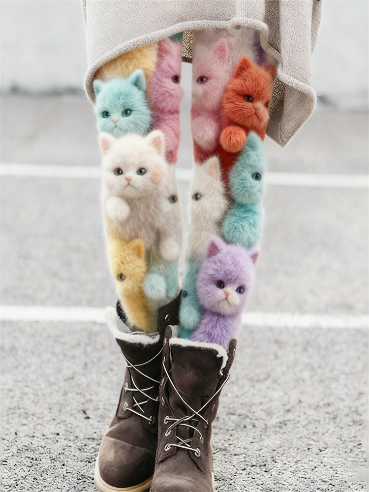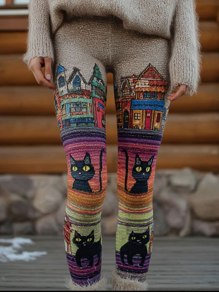 Rainbow Fun Cat Lady's Knitted Tight-fitting Leggings