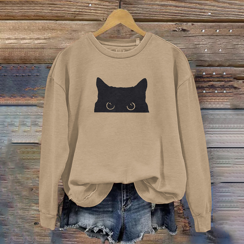 Women's Casual Japanese Art Funny Black Cat Print Sweatshirt