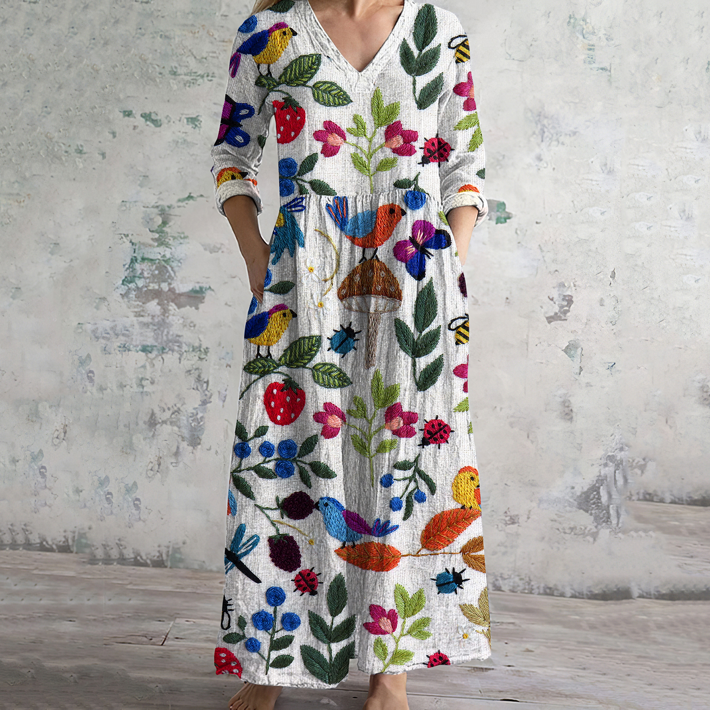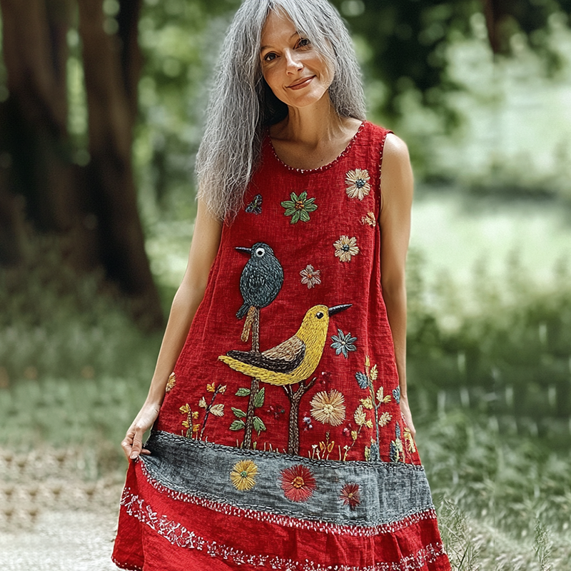 Women's Folk Flower And Bird Art Embroidery Pattern Dress
