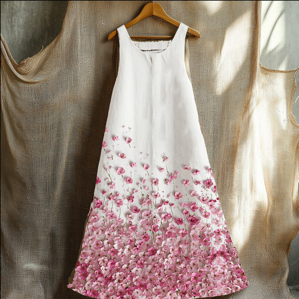 Women's Vintage Oil Painting Floral Art Contrast Color Linen Sleeveless Dress