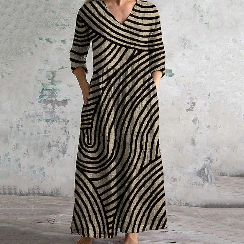 Japanese Traditional Sashiko Art Linen Blend Midi Dress