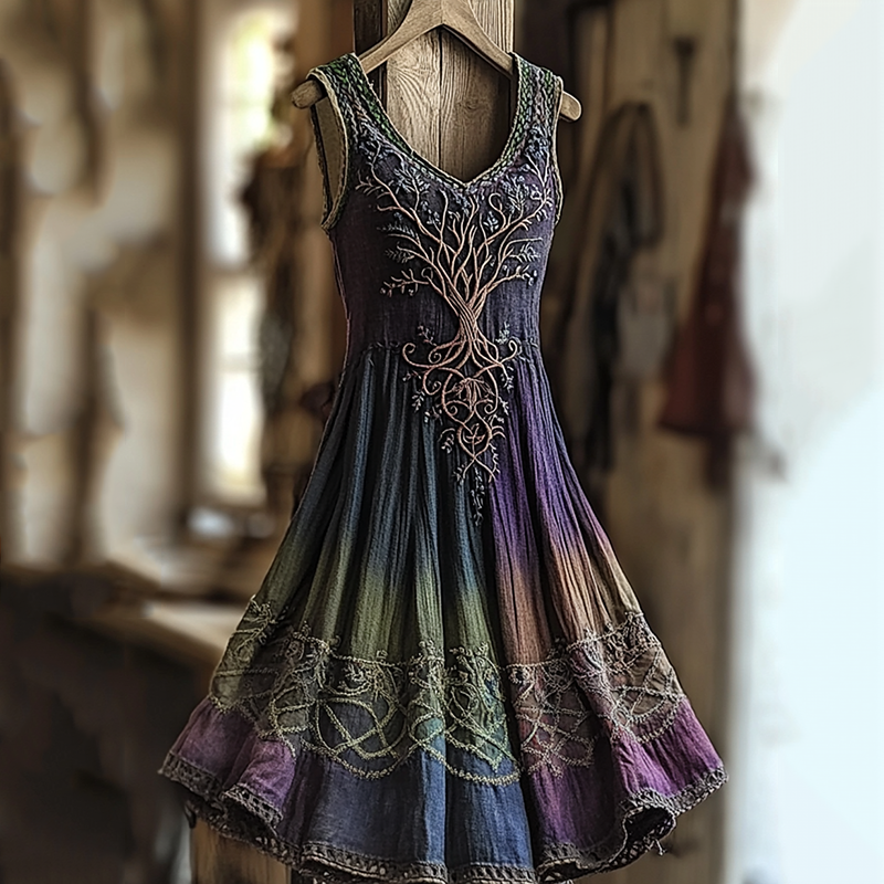 Women's Vintage Viking Tree Of Life Gradient Linen Dress