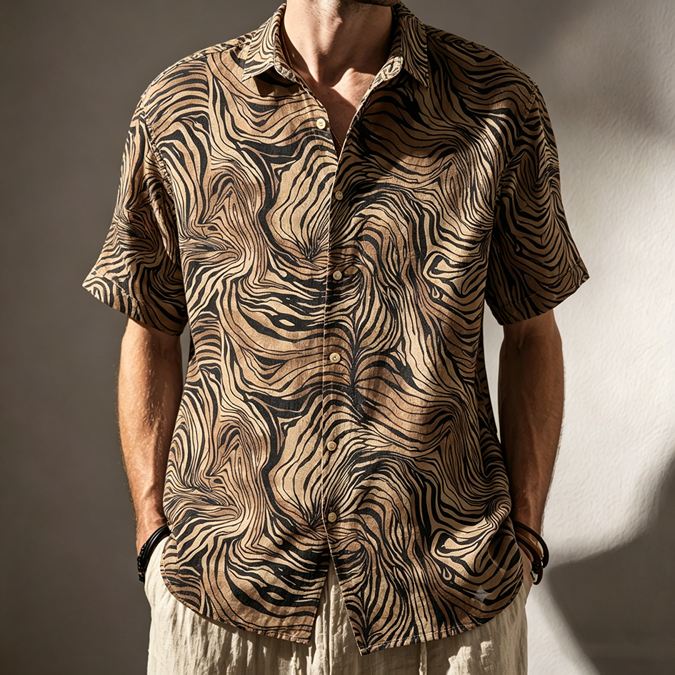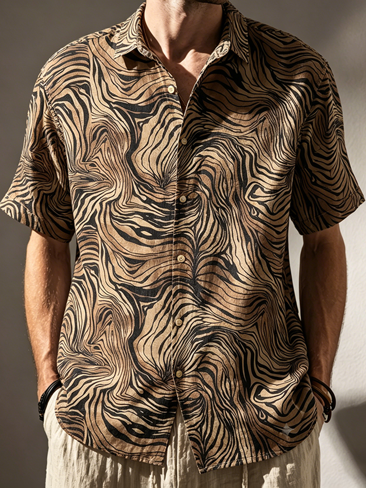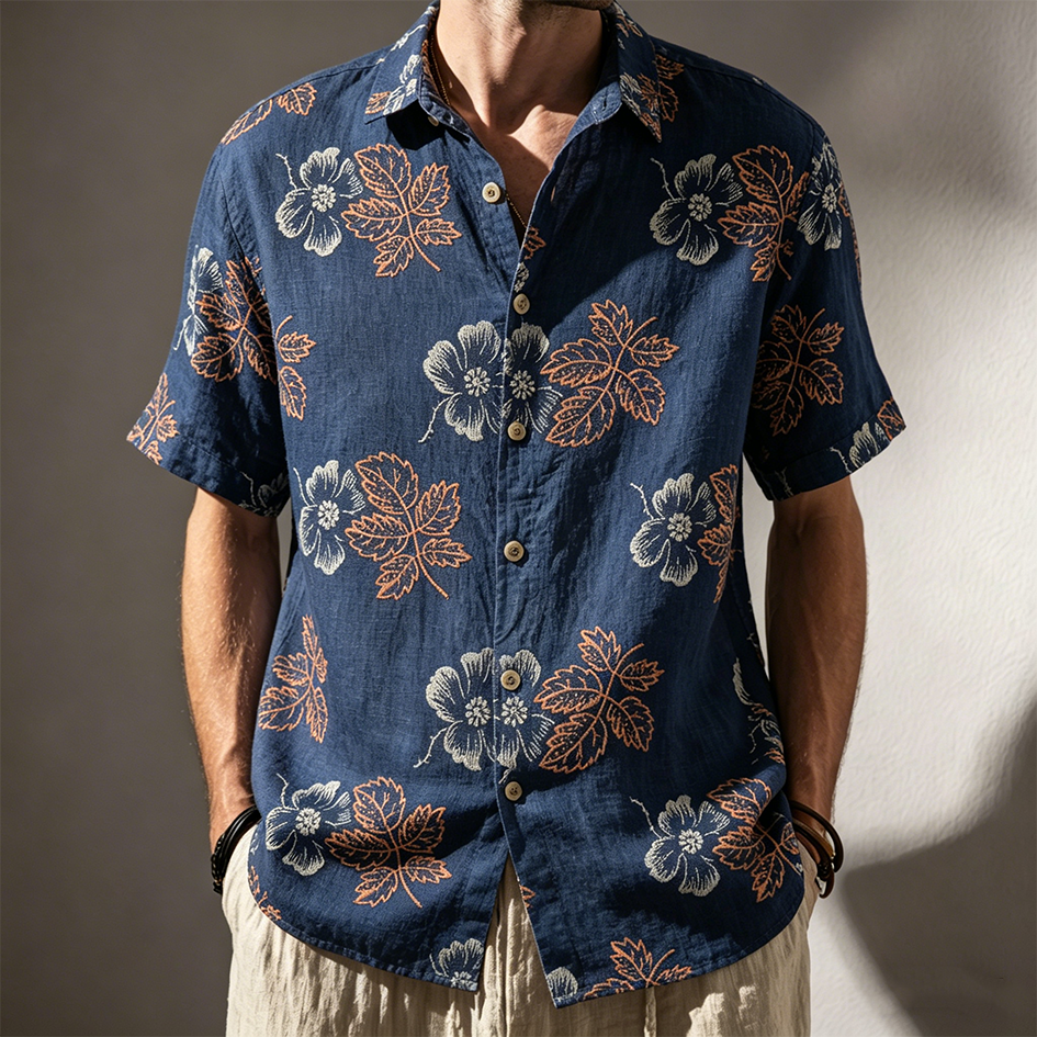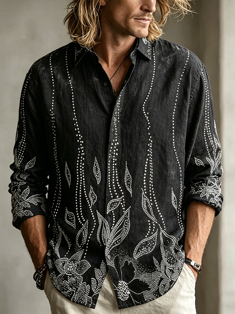Men's Retro Plant Pattern Design Casual Linen Shirt