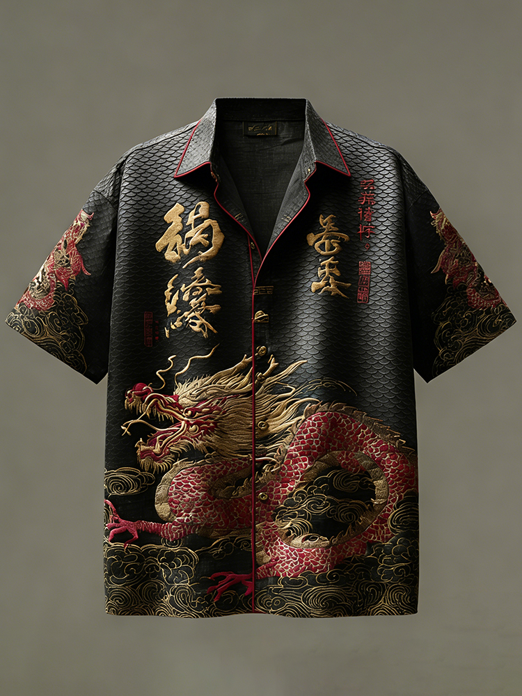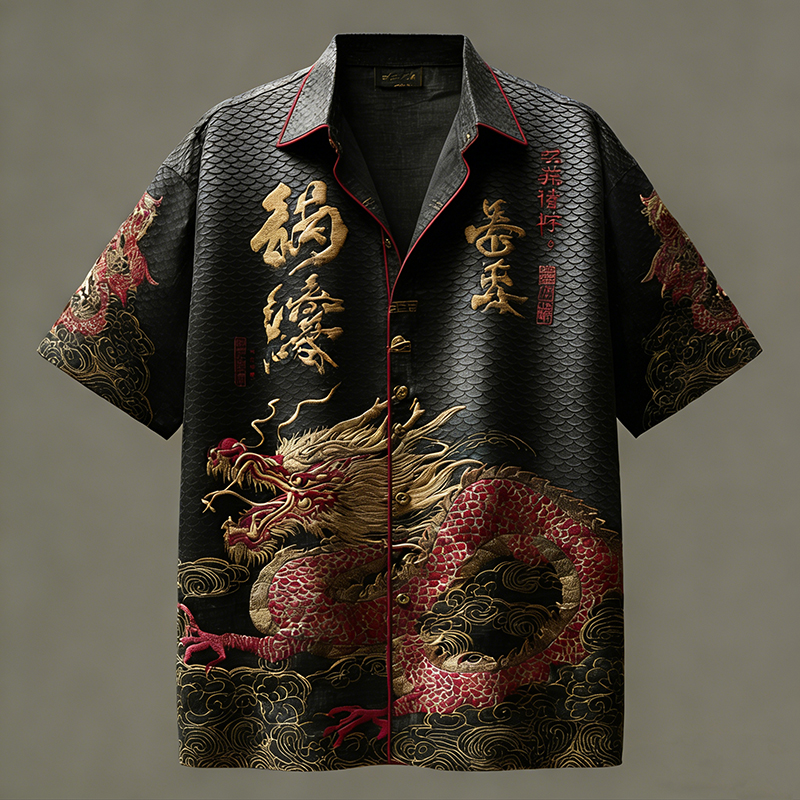 Retro Japanese-style Dragon Scale Pattern Casual Shirt