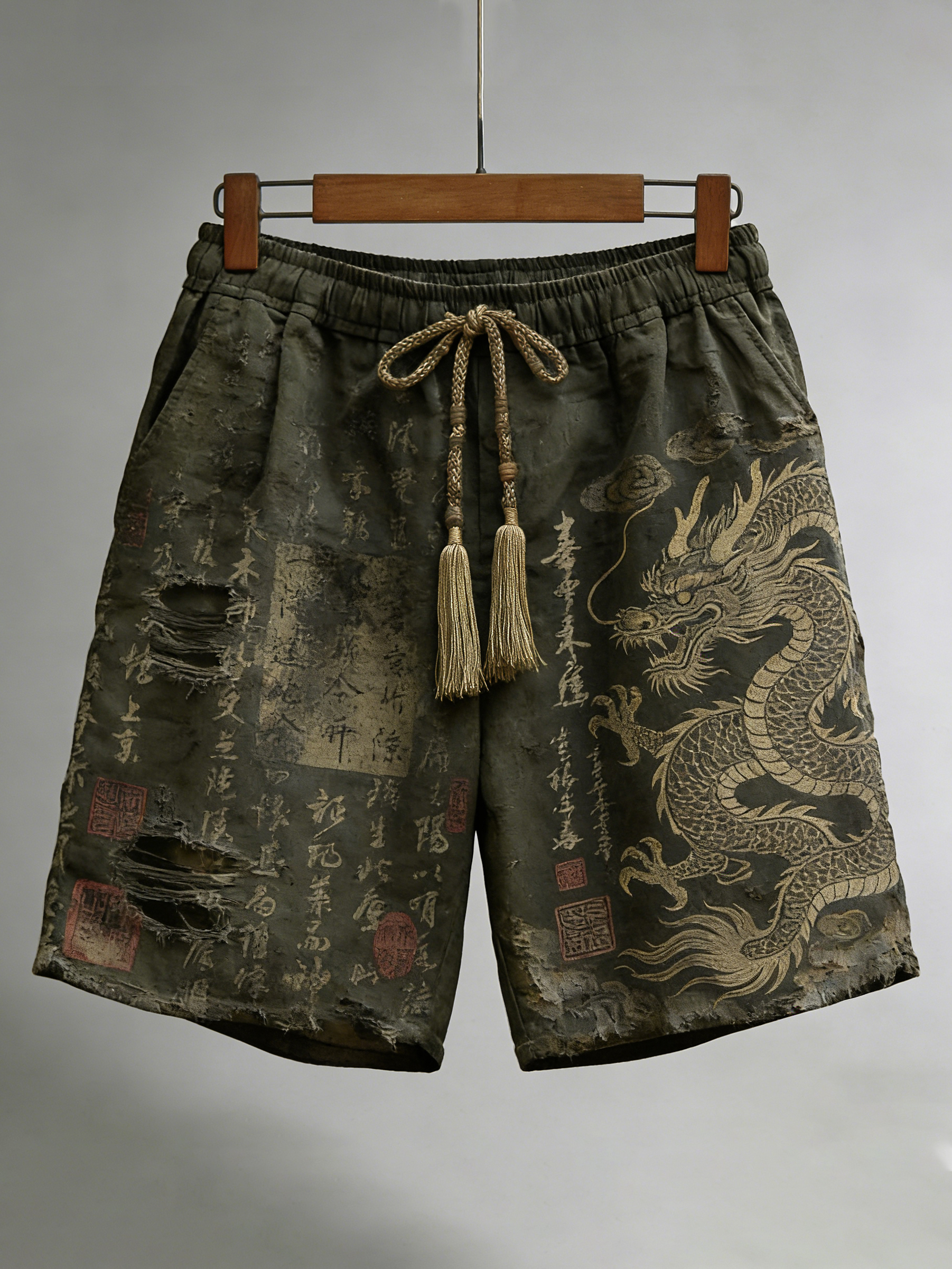 Men's Japanese Calligraphy And Dragon Art Linen Shorts