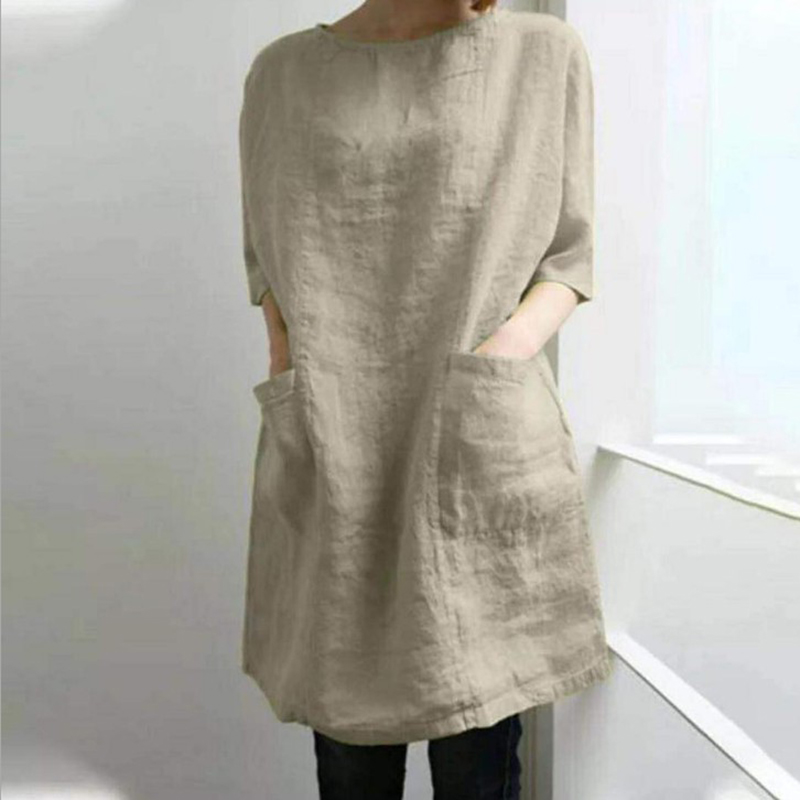 Women's Solid Color V-neck Linen Blend Loose Midi Dress
