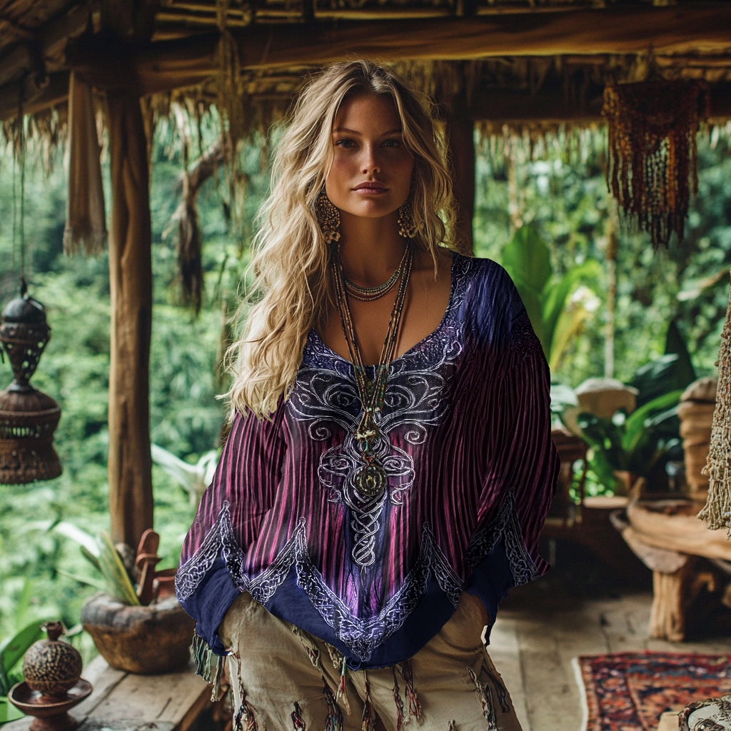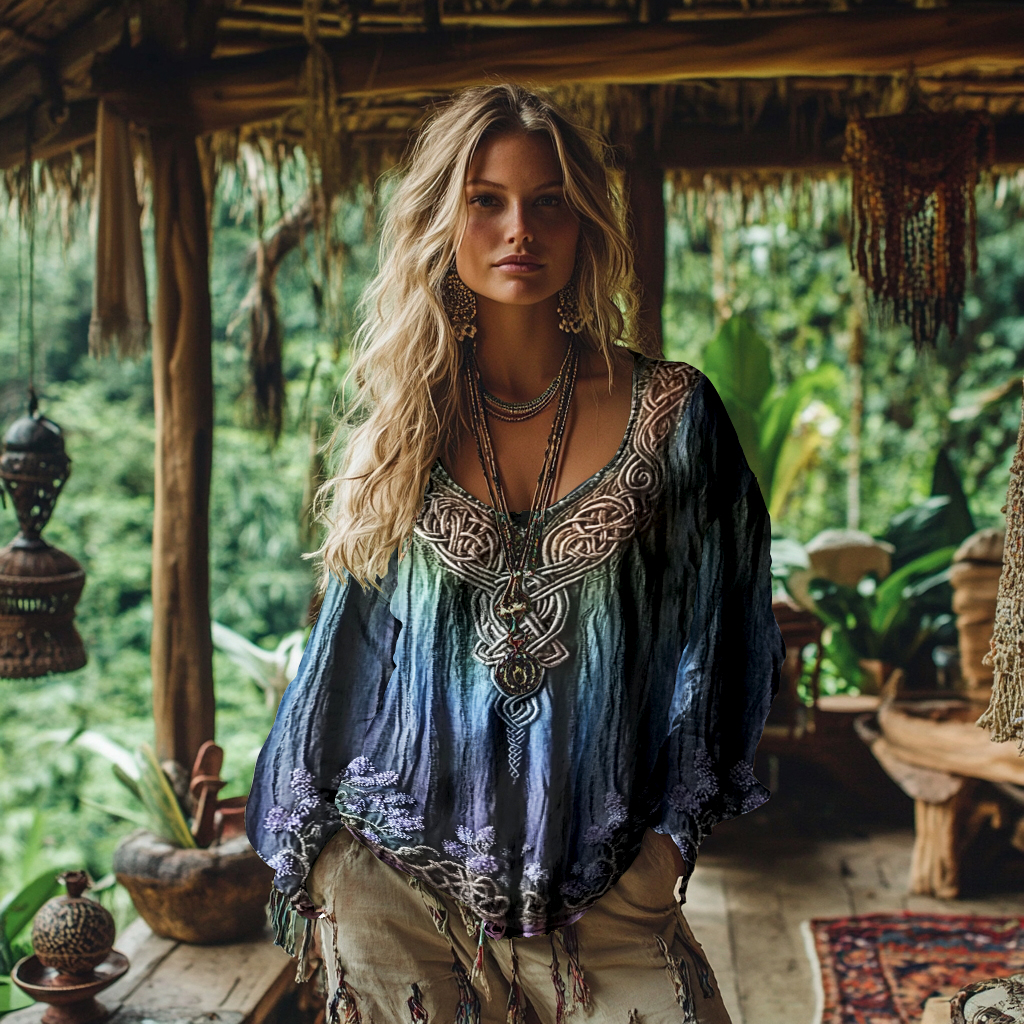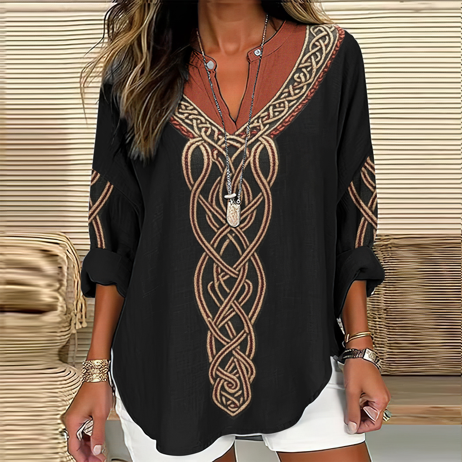 Women's Vintage Tribal Celtic Knot Lace V Neck Linen Shirt
