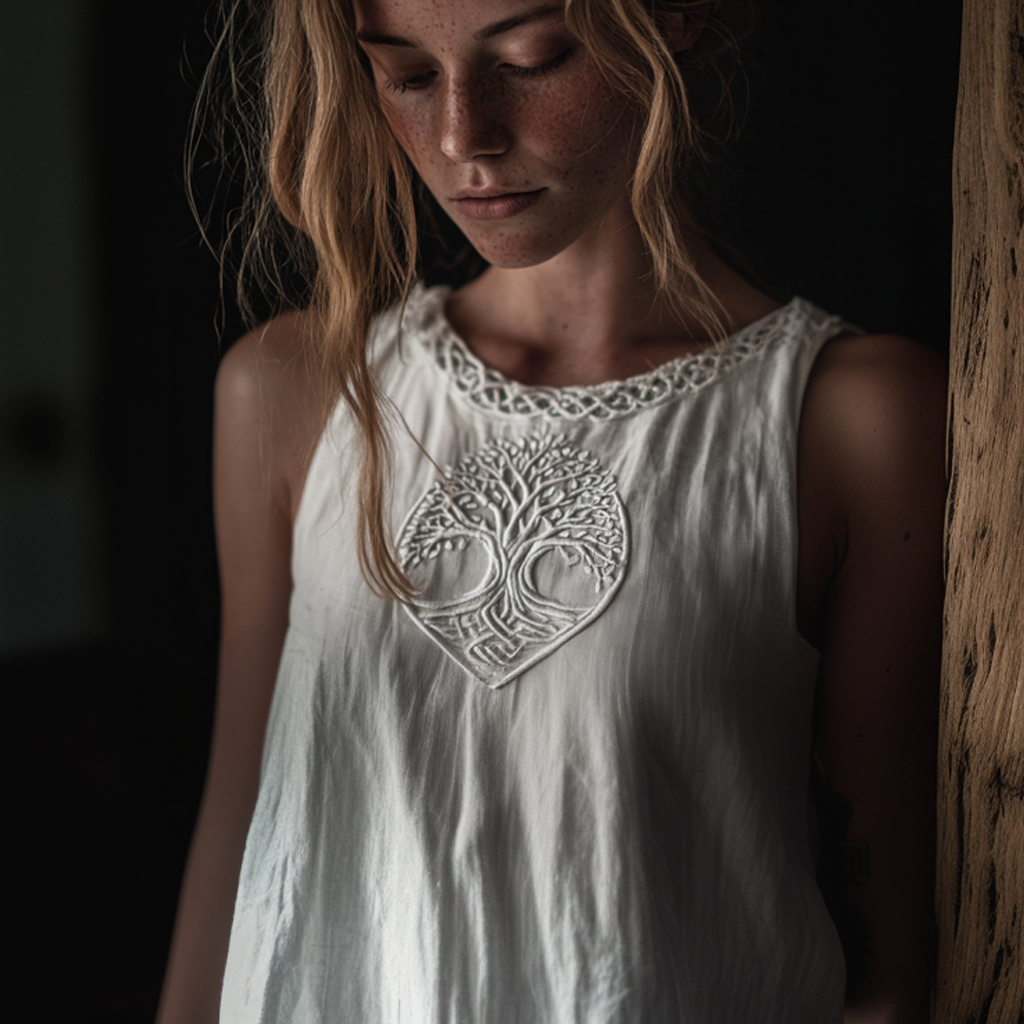 Tribal Viking Life Of Tree Celtic Knot Lace Art Linen Tank Dress