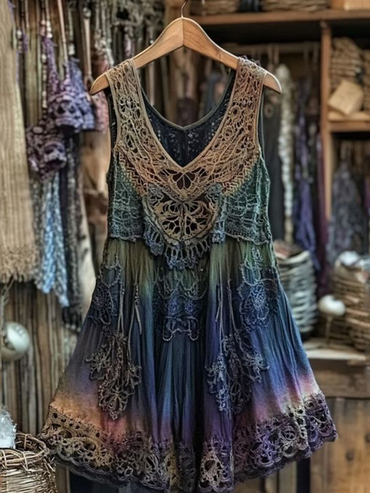 Vintage Viking Pattern Gradient Casual Tank Dress
