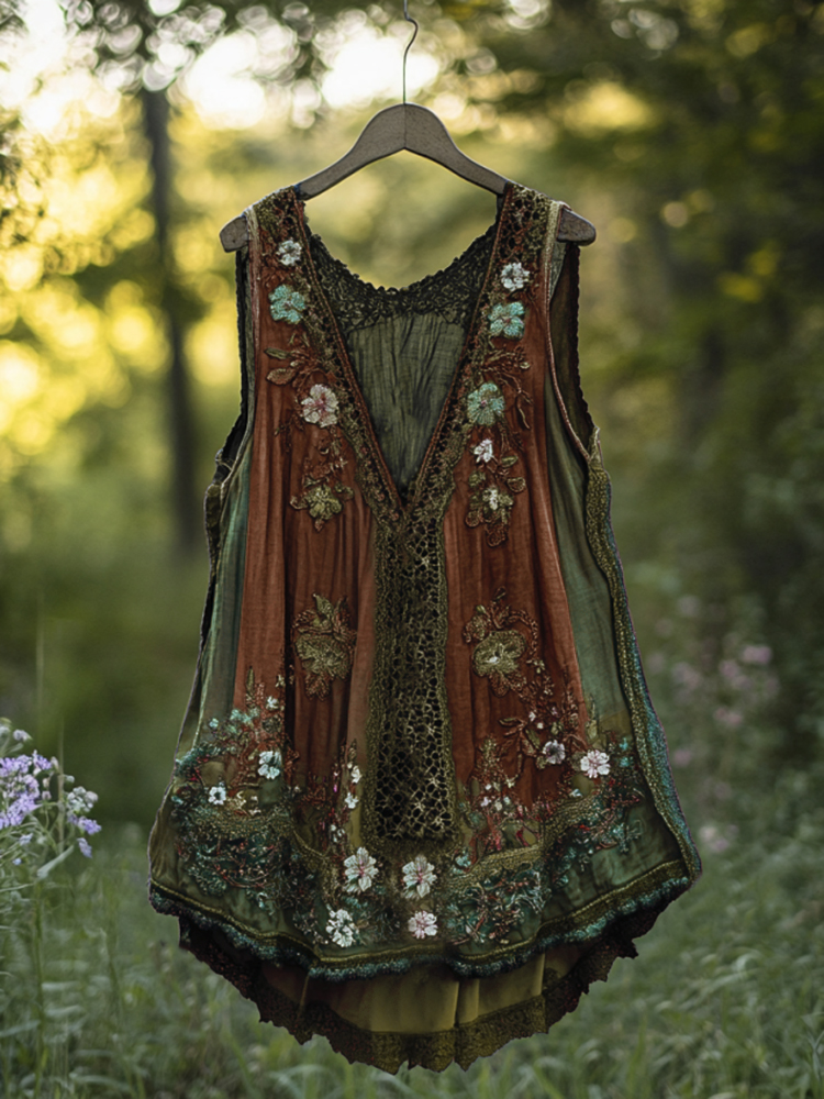 Boho Lavender Lace Art Linen Lace Patchwork Art Sleeveless Tank Top