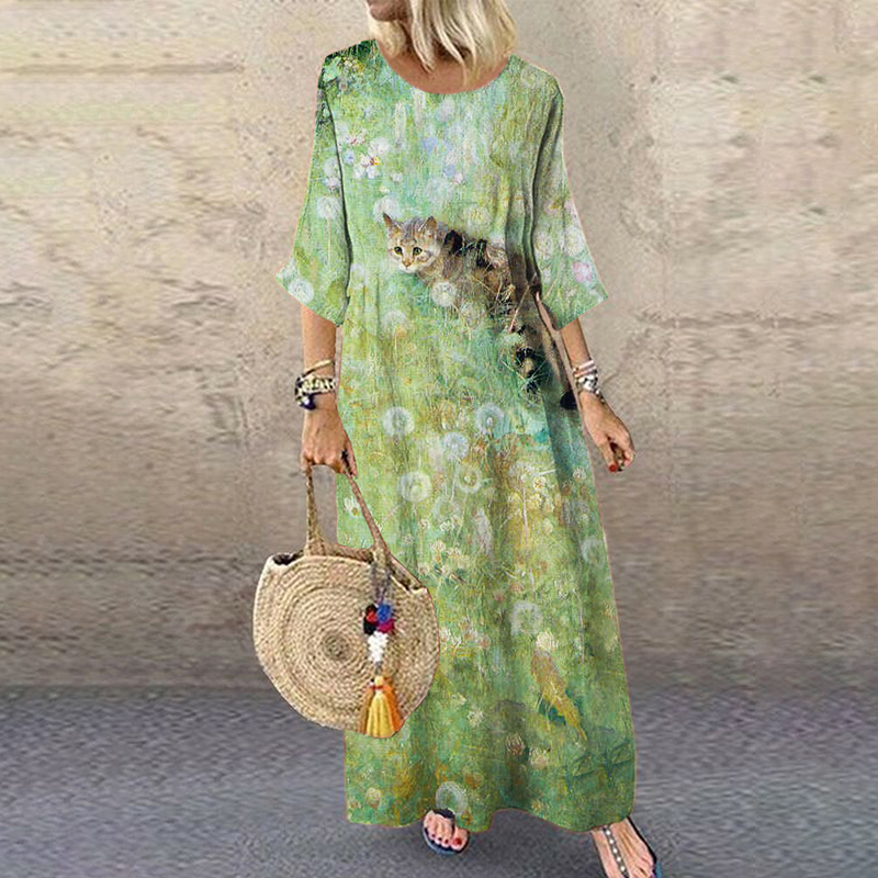 Cat & Botanical Women's Vacation Maxi Dress