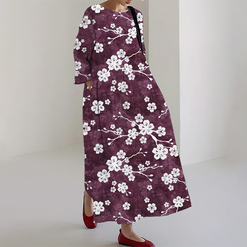 Cherry Blossom Festival Women's Linen Blend Maxi Dress