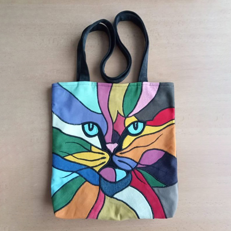 Colorful Cat Embroidery Pattern Canvas Bag