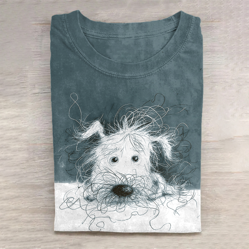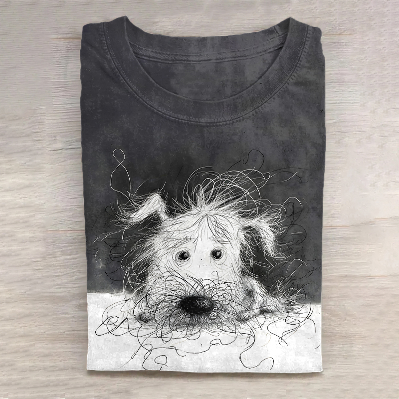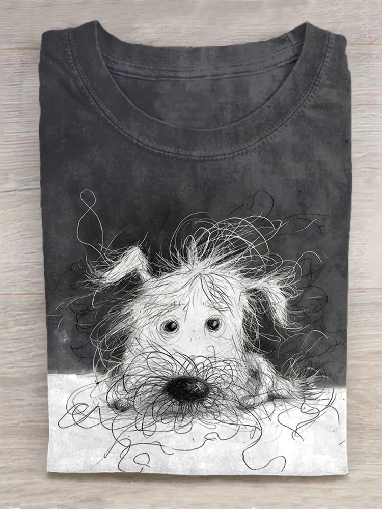Cute Dog Scrawled Puppy Art Print Casual Short Sleeve T-Shirt
