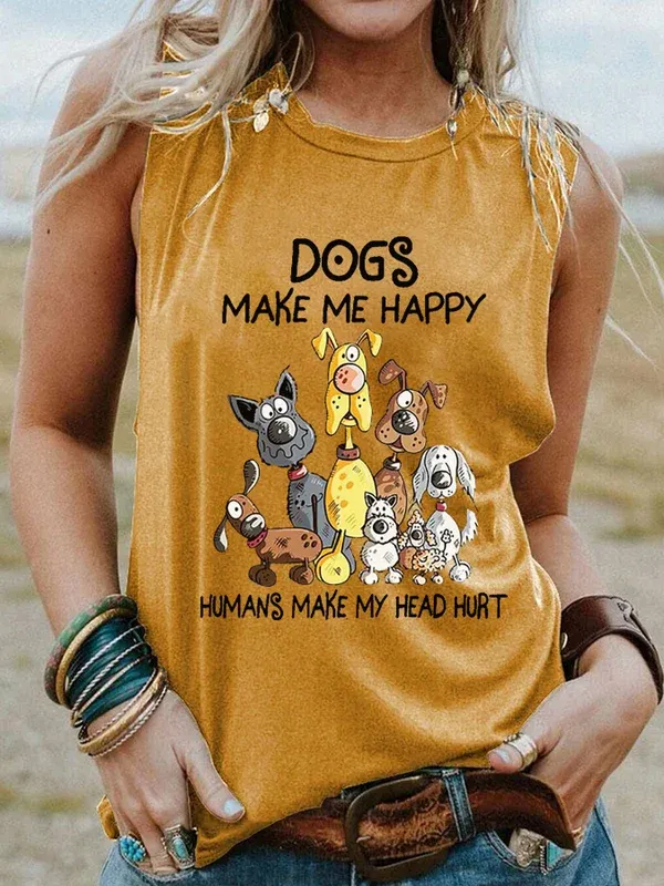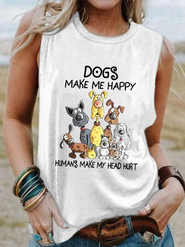 Dogs Make Me Happy Print Sleeveless Tank Top