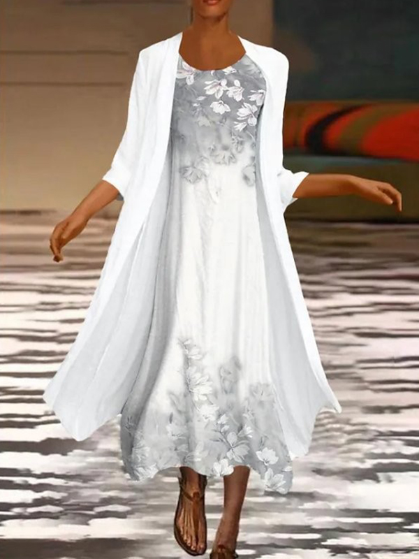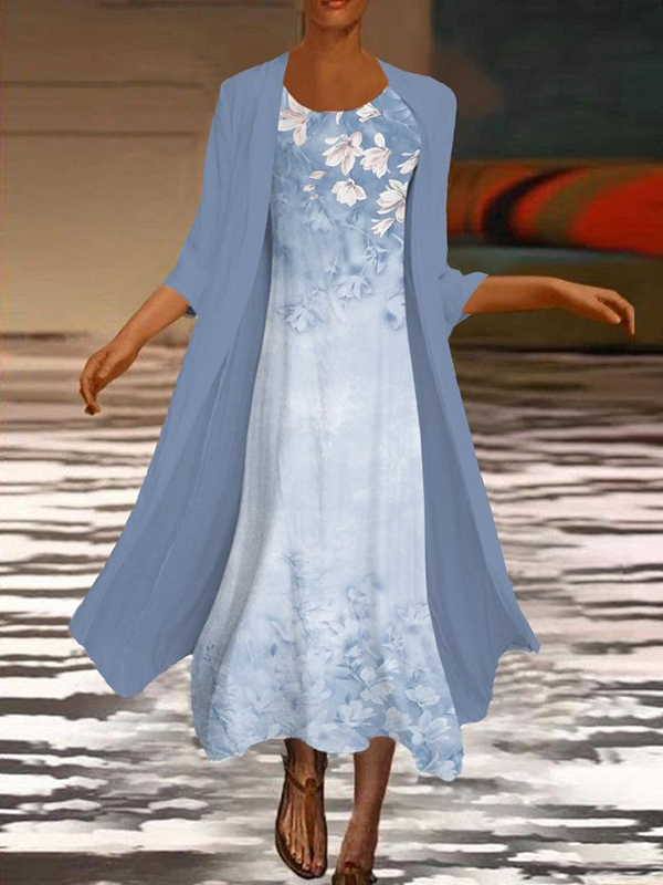 Floral Printed Flowy Maxi Dress With Cardigan Set Of 2