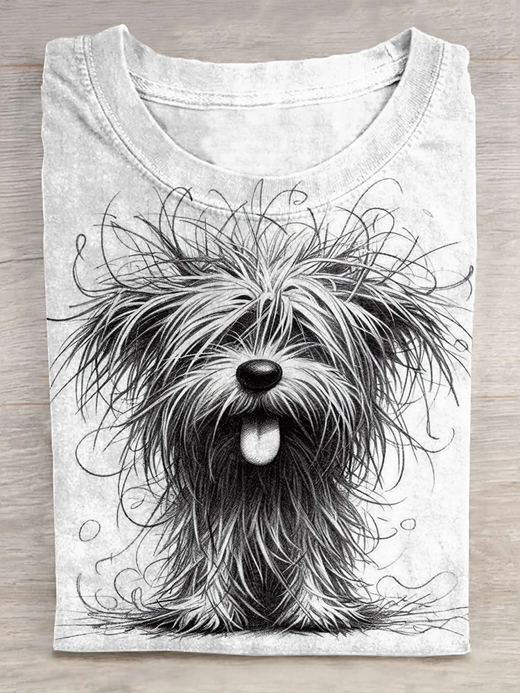 Funny Cute Dog Art Print Casual Short Sleeve T-Shirt