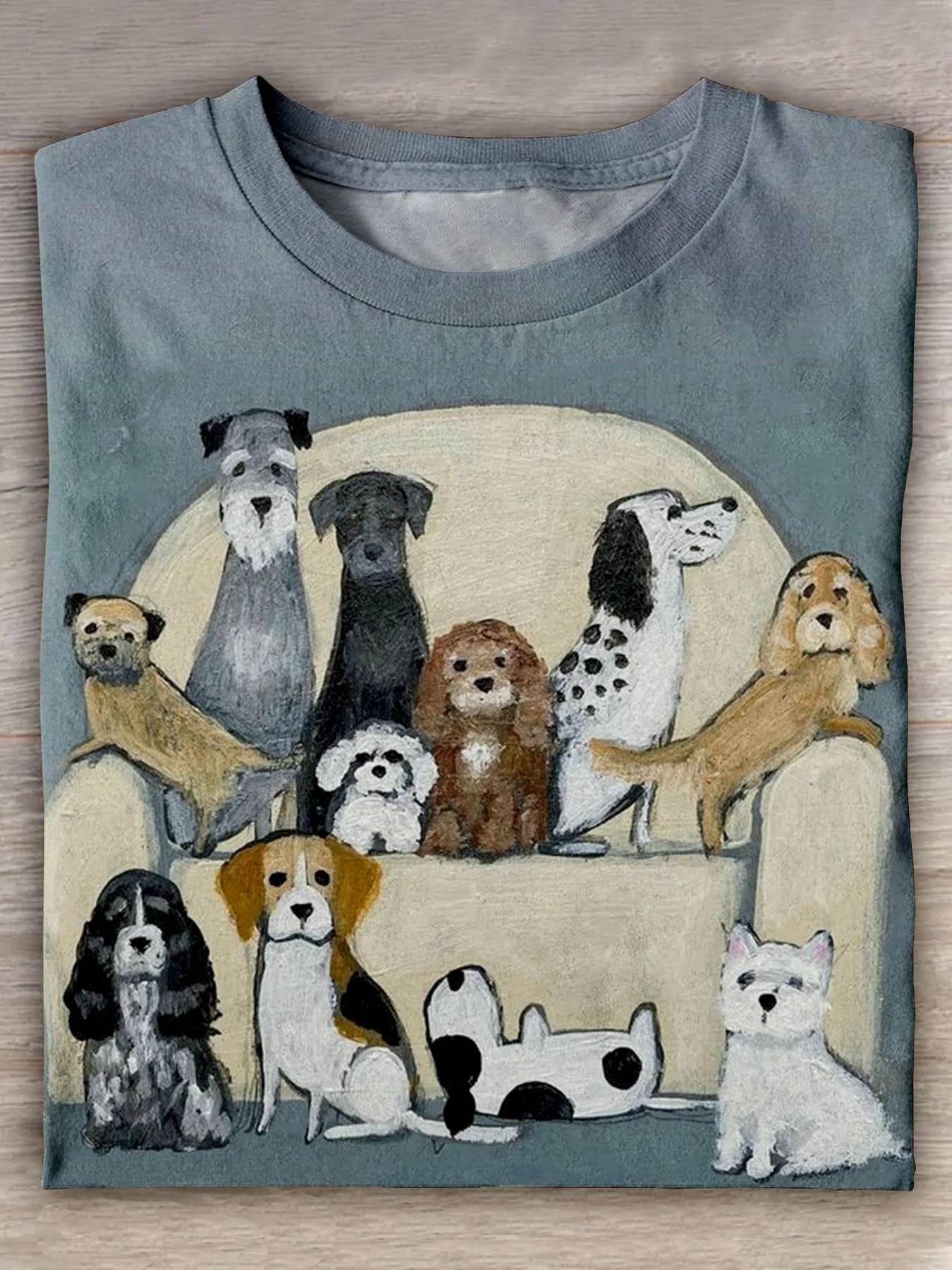 Funny Cute Dogs Art Print Casaul Short Sleeve T-Shirt