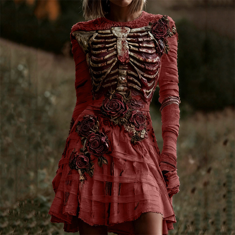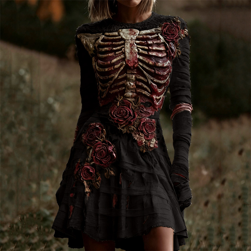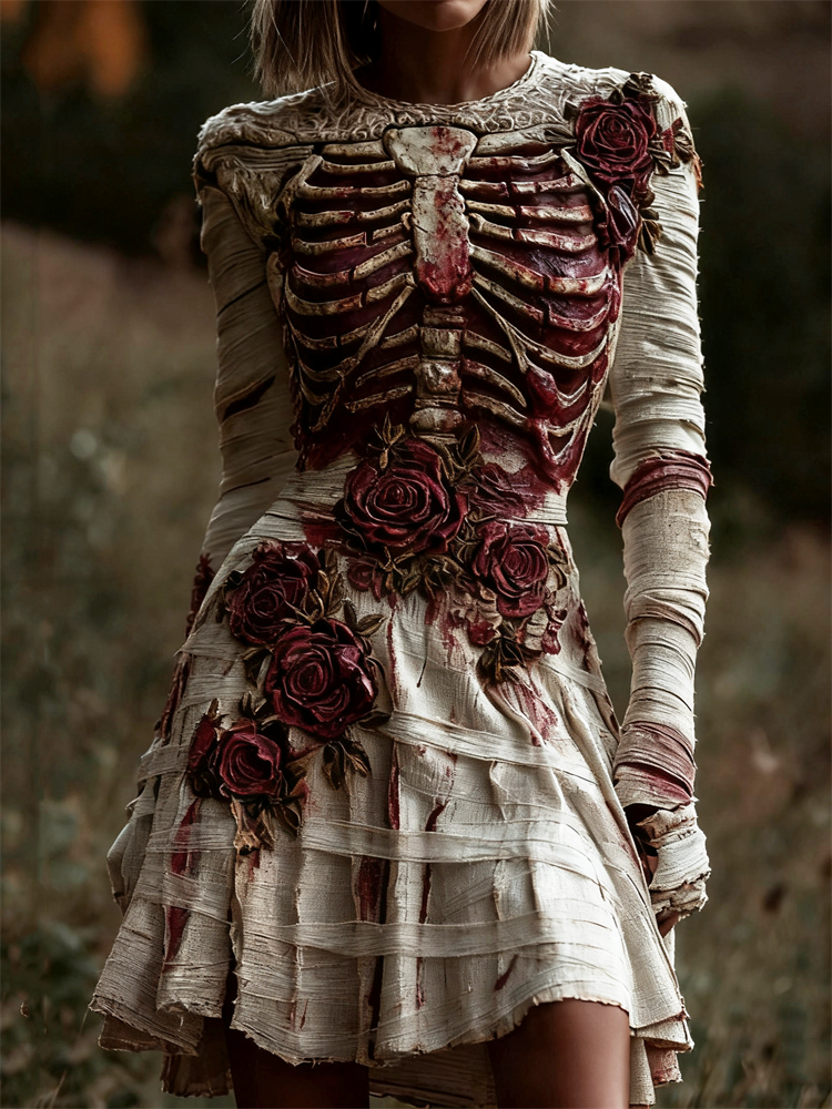 Halloween Bloody Rib Cage Red Roses Bandages Comfy Mini Dress