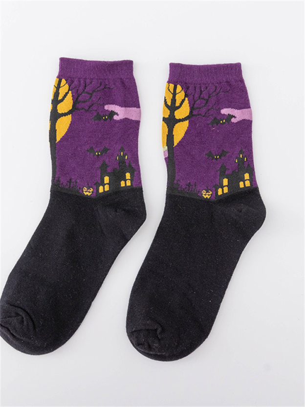 Halloween Inspired Contrast Color Knit Socks