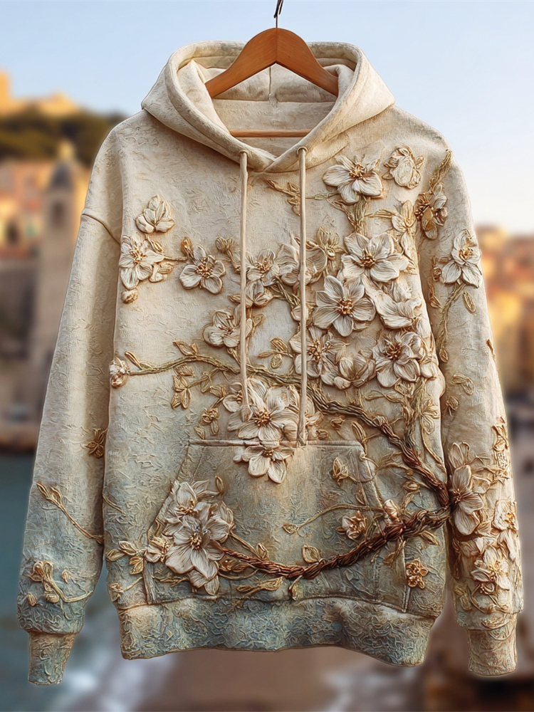 Japanese Art Plum Blossom Men's Casual Hooded Sweatshirt