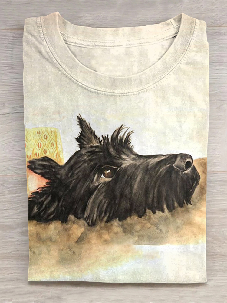 Lovely Dog Art Print Casual Short Sleeve T-Shirt