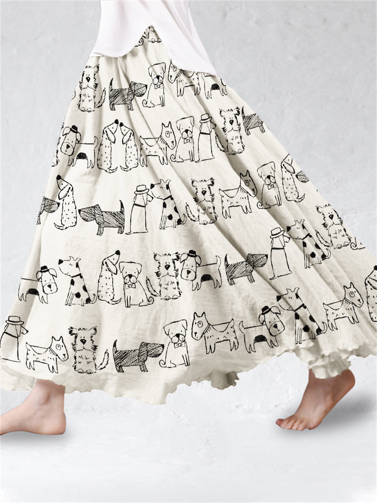 Lovely Dogs Painting Pattern Flowy Wide Skirt