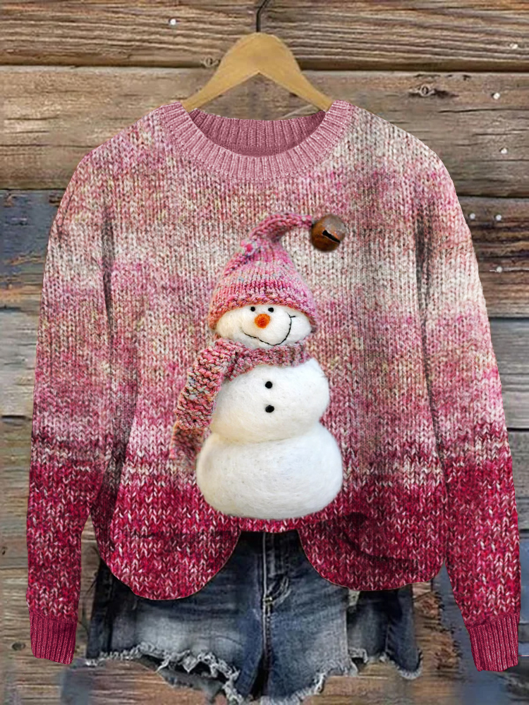 Lovely Snowman Vintage Gradient Knit Cozy Sweater