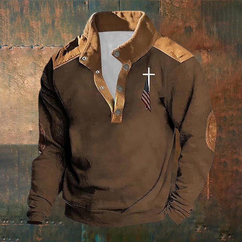 Men's American Flag Printed Stand Collar Half-Zip Sweatshirt