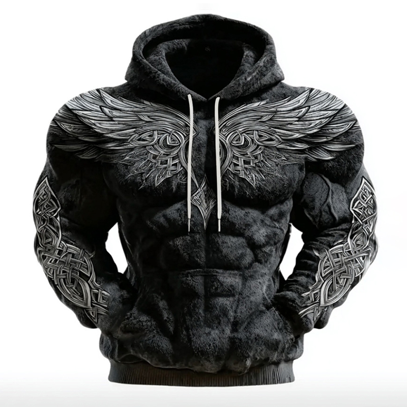 Men's Celtic Knot And Wing Pattern Flannel Hoodie
