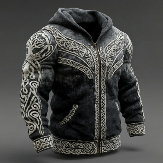Men's Celtic Tree Of Life Flannel Warm Hooded Jacket