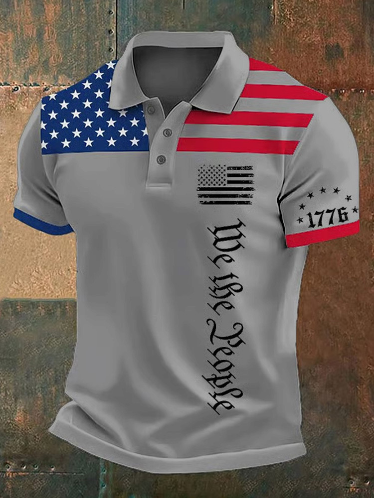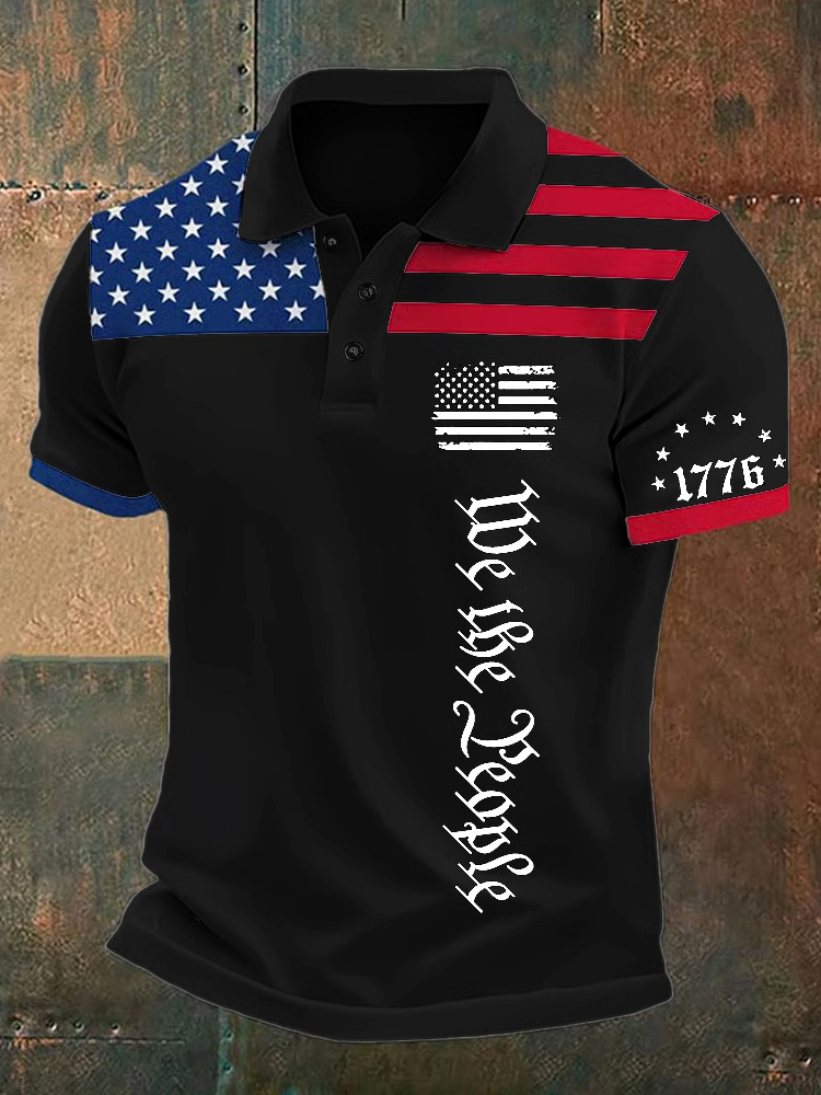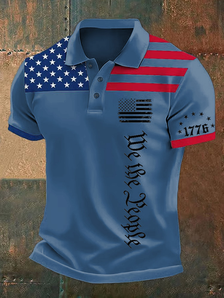 Men's Independence Day Flag We The People Printed Holiday Casual Polo Shirt