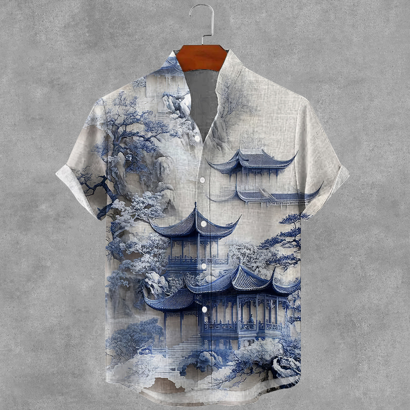 Men's Japanese Art Print Casual Short Sleeve Shirt