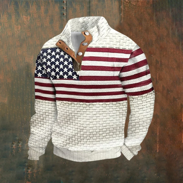 Men's Retro American Flag Printed Stand Collar Half-Zip Sweatshirt