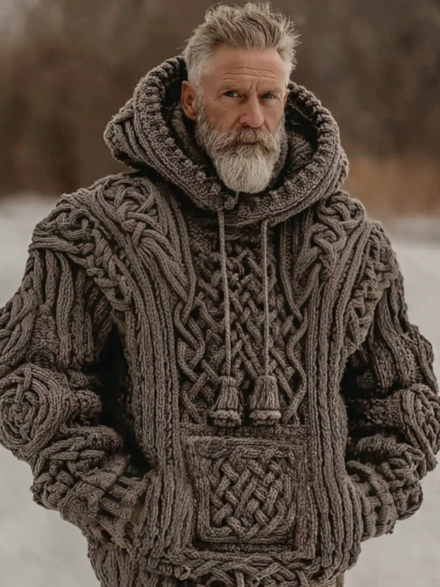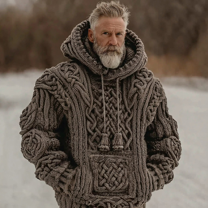 Men's Retro Celtic Knot Hooded Knit Sweater
