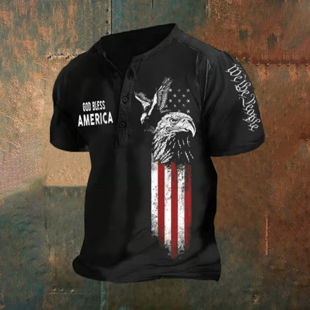 Men's Retro God Bless America Independence Day Round Neck T-shirt